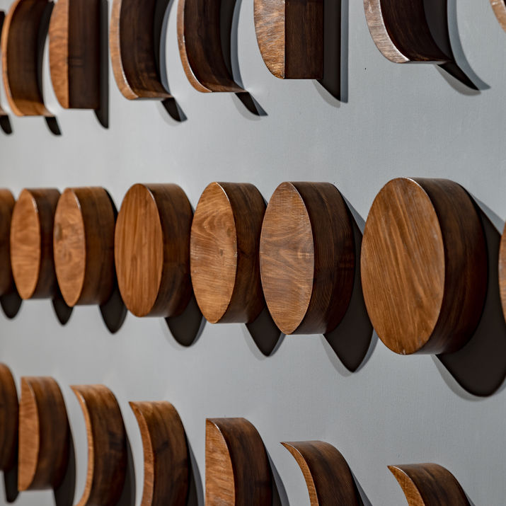 Using materials such as sandstone, recycled wood, and cement, Remen grounds fleeting memories in tactile, enduring forms. Her works are immersive and dynamic, merging past and present into evolving landscapes. Cities like Rawalpindi and Shimla, filtered through her early experiences, become abstract maps that dissolve the boundaries between geography and memory.